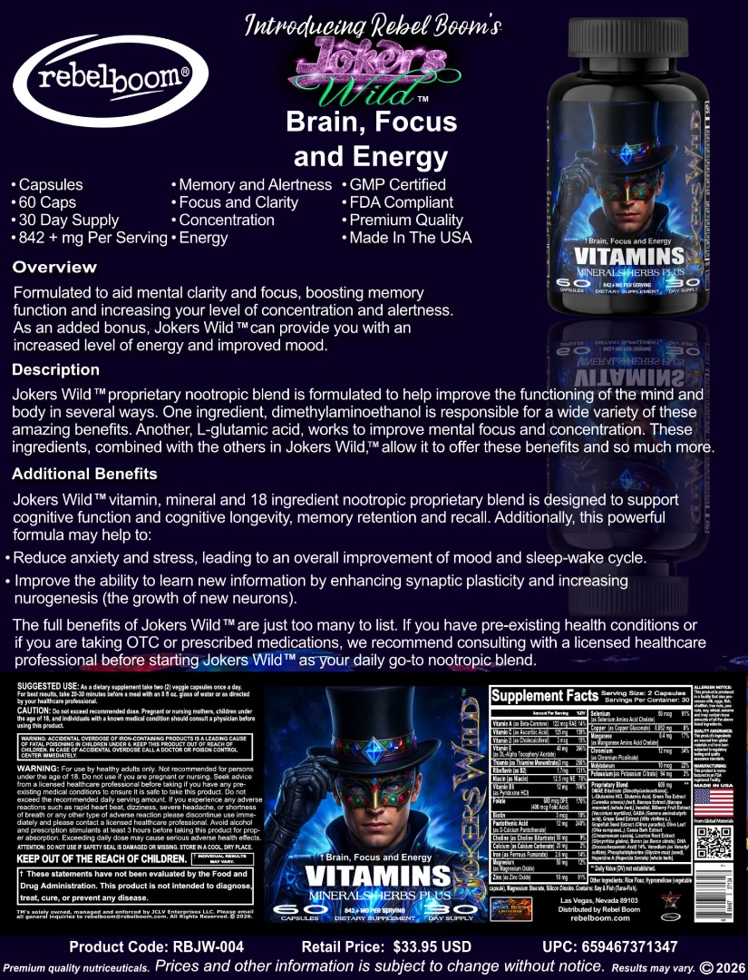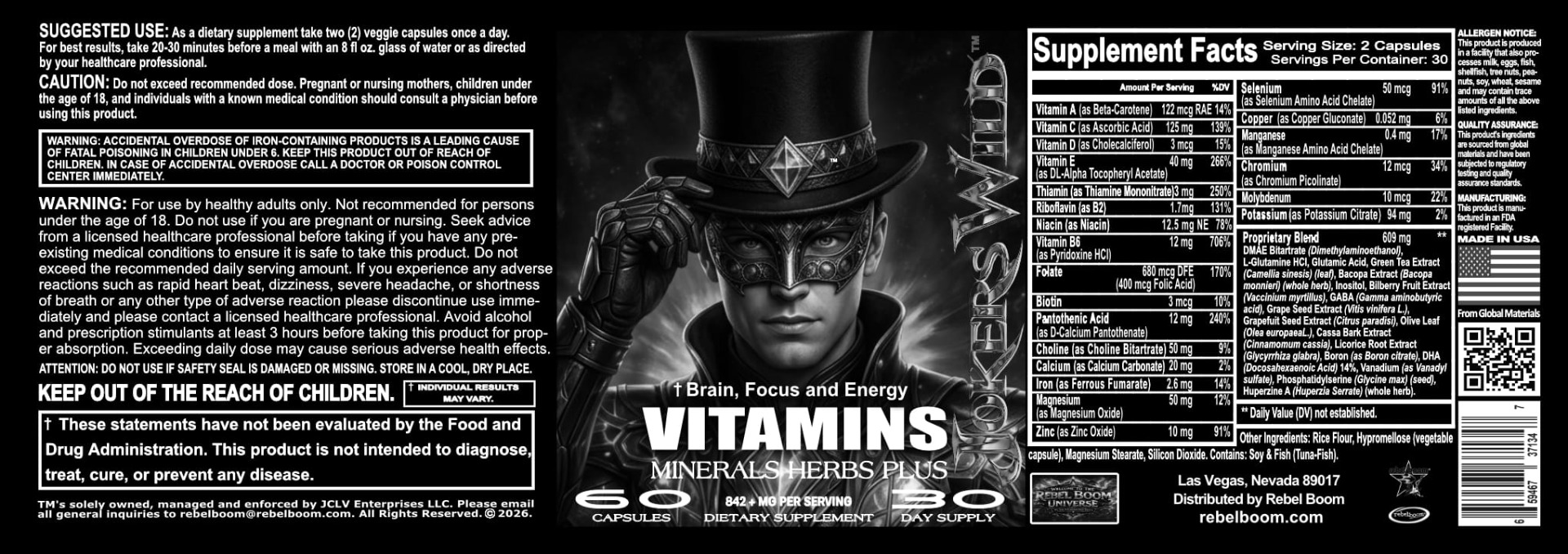 The Ultimate Synergistic Formula for the Rebel Boom LifestyleIntroducing Rebel Boom’s Vitamins Plus Multi Ingredient Formula, an incredibly powerful formula meticulously crafted to align with the core values and dynamic culture of Rebel Boom. Designed for the modern Rebel Boom customer who seeks a healthy, vibrant, and high-energy lifestyle, this 30-day supply of Vitamins Plus is more than just a supplement—it's a statement of commitment to optimal health, wellness, and innovation.
